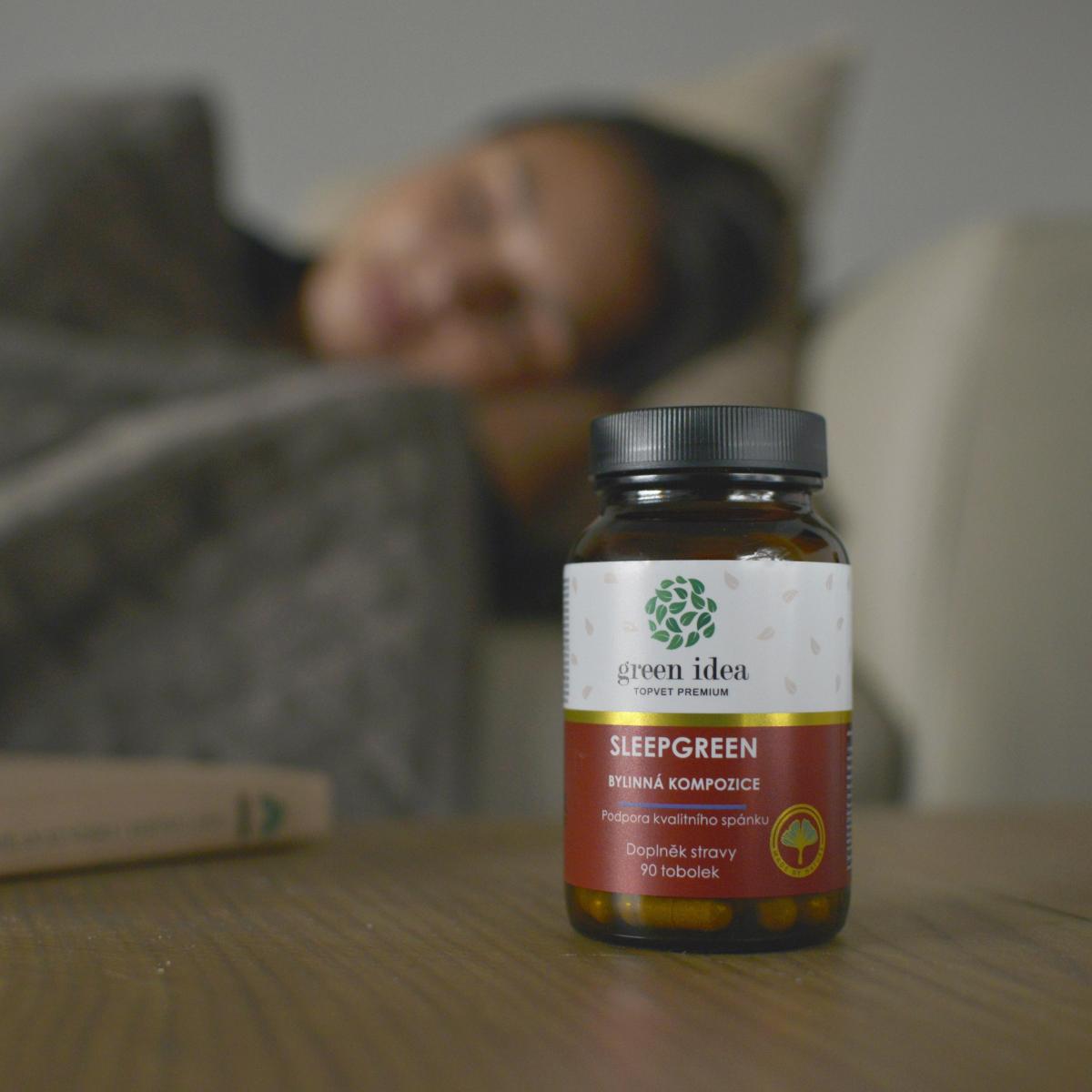 Kvalitní spánek je jedna ze základních podmínek pro kvalitní a plnohodnotný život. Dnešní doba nás vystavuje zvýšenému účinku stresu. Chronický stres se velmi často podepisuje na schopnosti usnout a na kvalitě spánku. Projevuje se častým buzením nebo úplnou nespavostí. Bylinný přípravek Sleepgreen tlumí projevy stresu, pomáhá plnohodnotné relaxaci, odstraňuje potíže s usínáním, potlačuje poruchy spánku (hypericin). Přípravek při pravidelném užívání podporuje koncentraci, vitalitu a fyzickou výkonnost. Přípravek přispívá ke snížení míry únavy a vyčerpání.